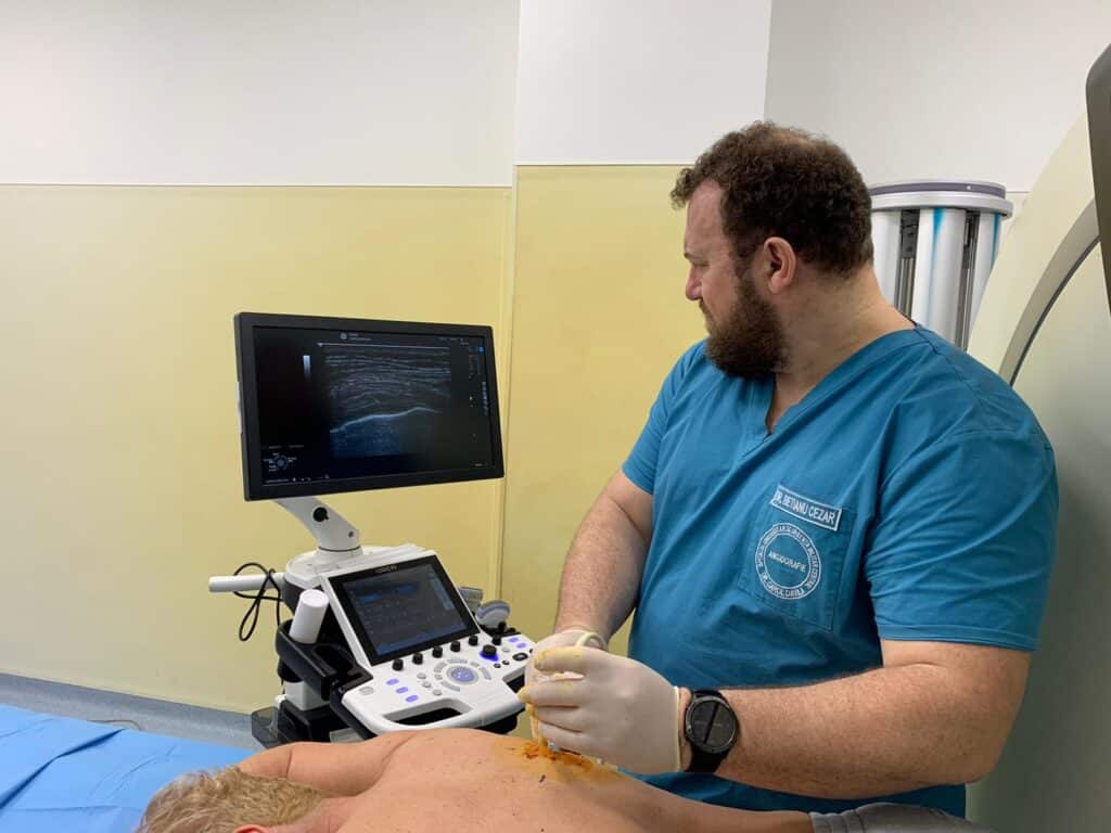 Medicul radiolog va marca zona exactă unde va introduce acul, cu un marker. Un asistent medical va ajuta pacientul să se așeze în poziția corectă. Locul biopsiei va fi curățat, și se va administra un anestezic local.